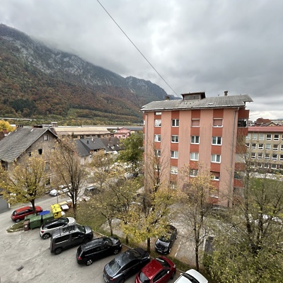 Enosobno stanovanje se nahaja v četrtem nadstropju nizkega bloka na Ulici Franca Benedičiča na Jesenicah in obsega 48,1 m2
