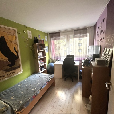 Štirisobno stanovanje se nahaja v prvem nadstropju nizkega in mirnega bloka na Cesti Cirila Tavčarja na Jesenicah in obsega 96,2 m2.